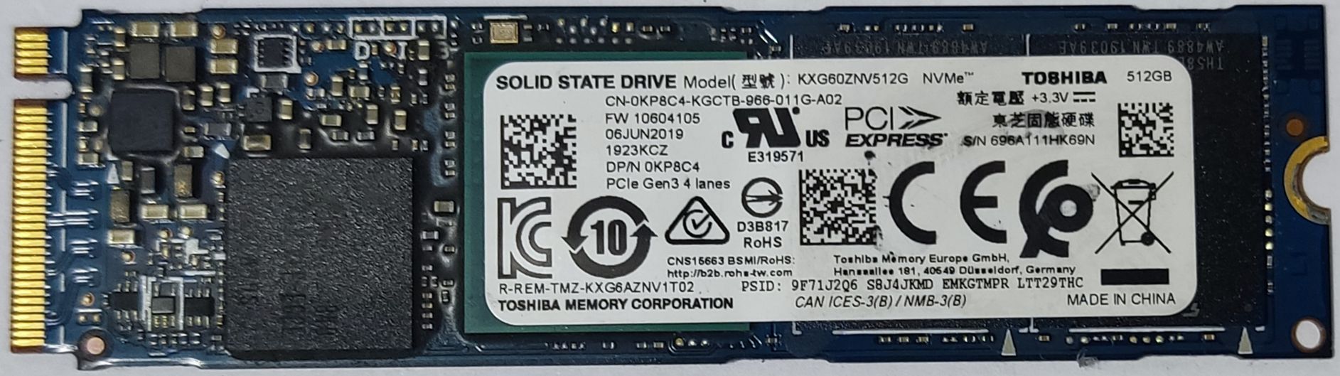SSD NVMe M.2 2280 512GB KXG60ZNV512G TOSHIBA